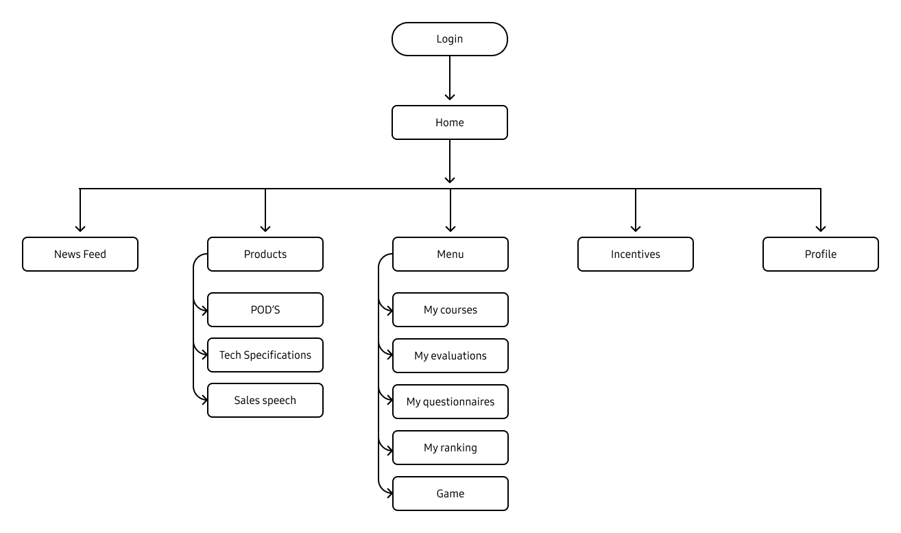 - Designed navigation maps and user flows to simplify access to news, incentives, and training modules.